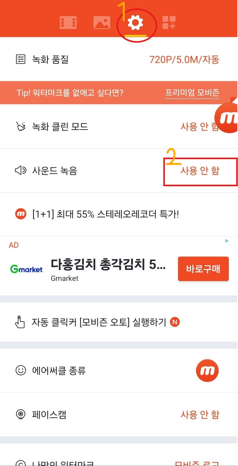 바꾸면 음성녹음 꺼져서 음소거로 영상저장됨